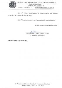 O Poder Legislativo Municipal- ” A Serviço da Cidadania” – Gestão 2021-2024, divulga decreto de lei Nº. 30/2021, que entra em vigor na data do dia 05 de abril de 2021.